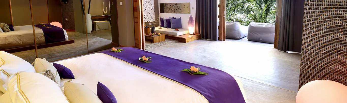Located on the hill amidst massive granite rocks and lavish greenery with exotic views of the Indian Ocean, the Eden Rock Spa and Wellness center reflects a haven of peace and tranquility and offers the promise of a pleasant journey to achieve harmony of mind, body and soul.