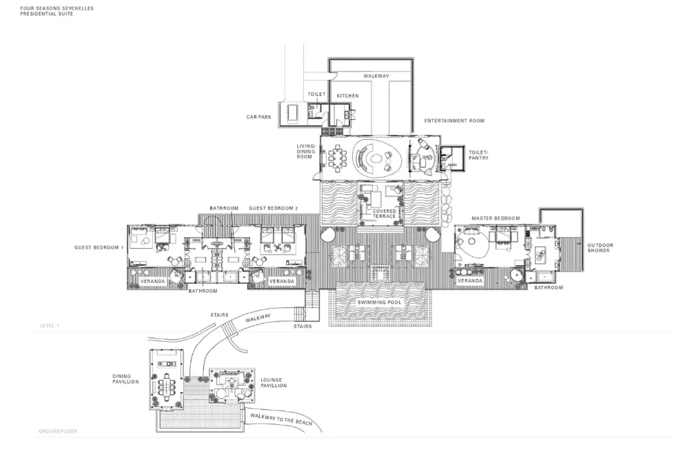 UNIQUE FEATURES - Outdoor dining and lounging pavilion with direct access to beach