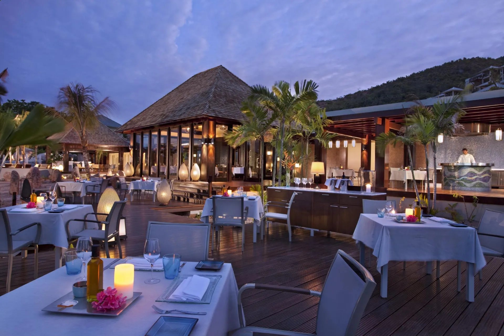 Pan-Asian flavours beneath candlelit palms